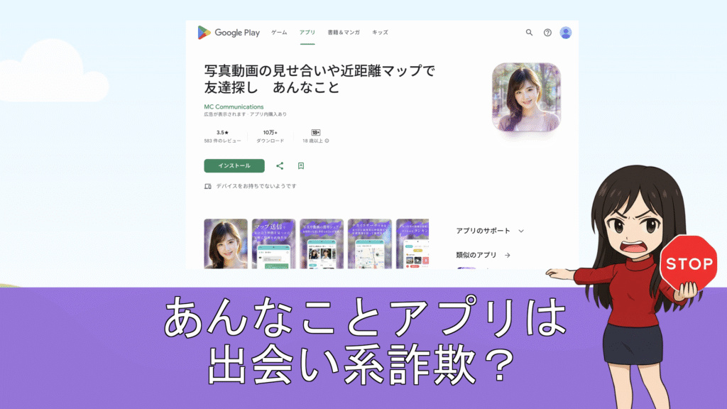 りんかです。あなたの味方で検証します。 出会いをにおわせるSNS風アプリ「あんなこと」を調べます。 写真・動画投稿と近距離マップで友達探し。匿名ニックネーム登録の手軽さが売りです。 LPは『完全無料のご近所検索』『写真・動画・近所お知らせマップ...