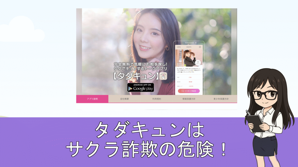 こんにちは、りんかです。今日の調査は「タダキュン」です。 無料で友だち探しができると聞き、実際の使い心地と安全性を見に行きました。 公式LPでは「完全無料」「個人情報不要」「24時間監視」と強く訴求。さらに「異性紹介事業目的ではない」と注意書... -